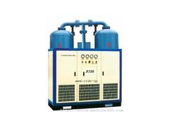 冷冻式干燥机是根据冷冻除湿原理,利用全封闭压缩式制冷系统,对经空压机排出的压缩气体冷却降温,使其中所含的大量饱和水蒸气、油雾凝结液滴,经过经气水分离后由自动排水器排出。较高温度的饱和压缩气体进入冷干机的预冷器,在预冷器中yu来自蒸发器的干冷气体进行热交换,降低温度后进入制冷系统的蒸发器,yu冷媒蒸汽进行第二次热交换,使本身温度降到接近于冷媒的蒸发温度,在两次降温过程中,压缩气体中的水蒸汽得以凝结成液态水滴并随气流进入气水分离器,分离下来的液态水经自动排水器排出机外,温度较低的干燥压缩气体进入预冷器,yu刚进入的湿饱和气体进行热交换,使本身温度得到提高,从而在冷干机排气口得到含水量较低(即露点较低)、相对湿度也很低的干燥压缩气体。冷冻式干燥机由于工作可靠、管理方便、运行费用低廉而成为各行业空压站房净化设备的机型。