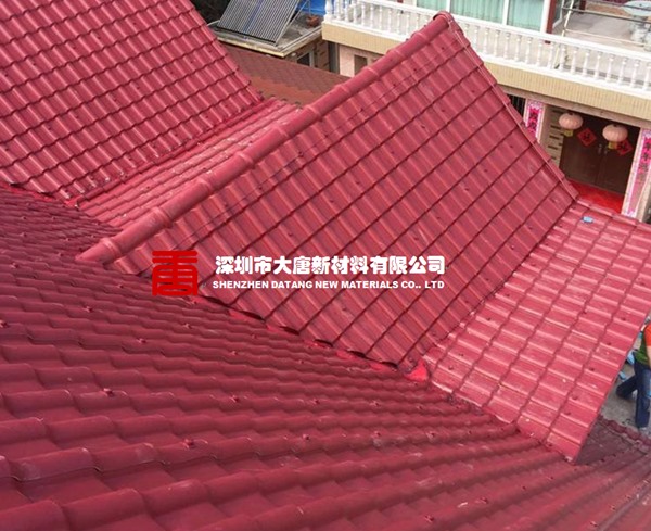 宝安区枣红面白底树脂瓦_大唐红色树脂瓦定制