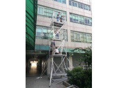 易达盘扣式铝合金伸缩脚手架防坠落式无焊接工艺设计制造。承载力强大,连接稳定性好,**可靠不松脱,接头自锁能力好,易达铝合金脚手架系统全部采用系列标准化配置,单杆式设计部件,便于堆放管理,存储及运输,经济实用,占用空间小,使用时间长,抗生锈能力好,脚手架底部配有可调节装置,配合脚轮可移动,配合脚垫可固定,可适合台阶、坡度及其他凹凸不平地面及山地等复杂场所作业使用,应用范围相当广泛。