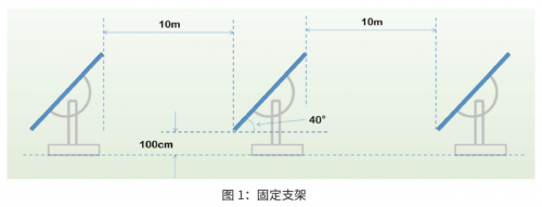 阵列前后间距为10米,固定支架倾角为40°,如图1所示: