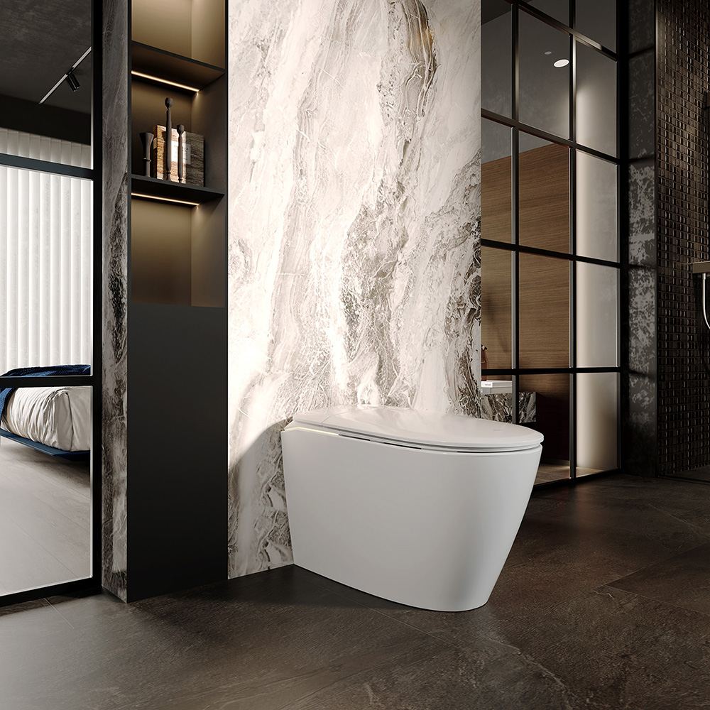 同时,多项舒适功能的智慧迭代也将温度美学融入多感官体验。座圈搭载的全新SupremeWarm | 瞬暖座圈技术在感应到用户接近后10秒即可快速完成加热,四季温感模式支持根据室温自动调节座圈温度,令每一次的零距离接触始终温暖如沐。环绕于座厕侧面的AmbiLux | 智感氛围灯不仅可根据昼夜节律自动调节明暗,提供夜间的贴心向导,更以随心调节的冷暖光感为生活刻画出温馨注脚。