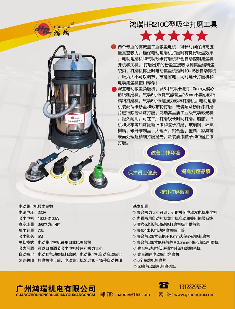 1、内置电动和气动打磨机两用伺服系统,电动角磨机和气动砂纸打磨机打磨时都可以自动控制电动集尘主机开机吸尘,把打磨出来的粉尘吸取到集尘桶内,没有粉尘飞散,确保操作人员的身体健康!