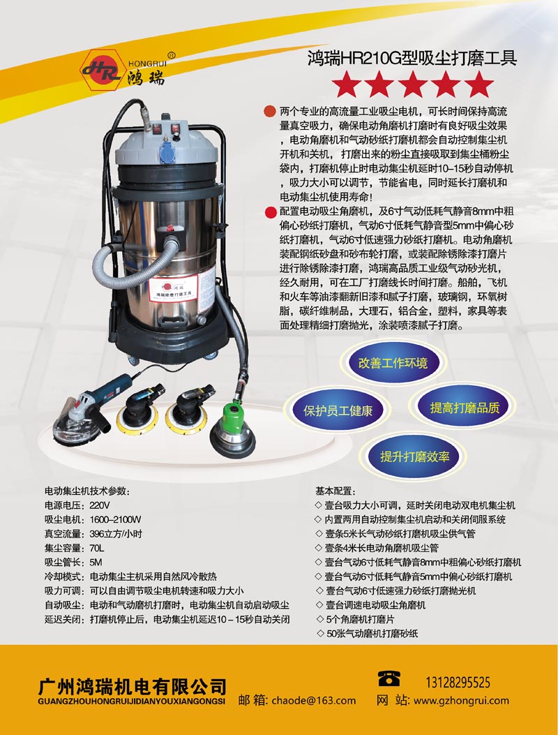1、内置电动和气动打磨机两用伺服系统,电动角磨机和气动砂纸打磨机打磨时都可以自动控制电动集尘主机开机吸尘,把打磨出来的粉尘吸取到集尘桶内,没有粉尘飞散,确保操作人员的身体健康!