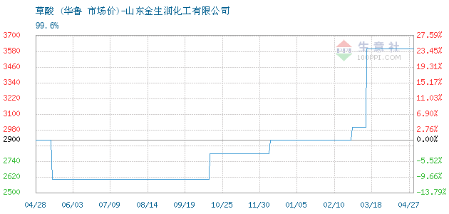 03月31日华鲁关于草酸的报价为4100元/吨。草酸的规格:99.6%。该报价有效期为3天。报价提供方:山东金生润化工有限公司。 拓展浏览资讯: