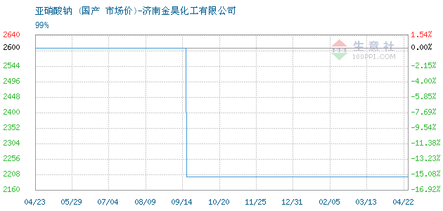 06月25日国产关于亚硝酸钠的报价为2850元/吨。亚硝酸钠的规格:99%。该报价有效期为3天。报价提供方:济南金昊化工有限公司。 拓展浏览资讯: