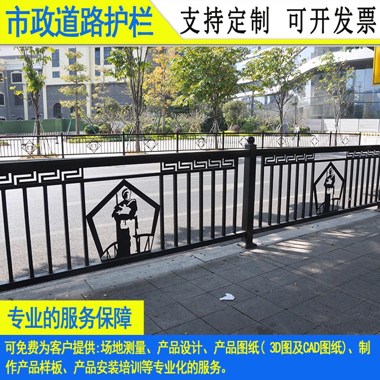 珠海中央文化市政护栏 河源花式道路铁艺栏杆 德式路侧隔离护栏