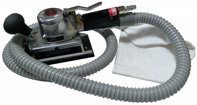 此磨机为自动吸尘磨机配有自吸尘管和粉尘布袋,磨机没有消音器,磨机压缩空气排出时经过吸尘口,高速气体产生的真空负压,能吸取部份打磨出来的粉尘,经自吸尘管流向粉尘袋,压缩气体经粉尘袋排出,粉尘过滤在粉尘袋内,自动收集部分打磨出来的粉尘在粉尘布袋内,有一定的环保集尘效果。